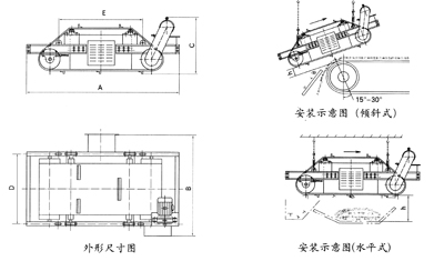 總體尺寸小,可稱(chēng)為輕型永磁帶式除鐵器,長(zhǎng)度、高度分別是C型的:70%、86%。