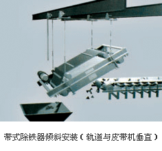懸掛安裝方式分傾斜、水平兩種,它們均與除鐵器定位在輸料帶的某個位置工作有關。