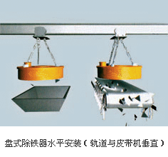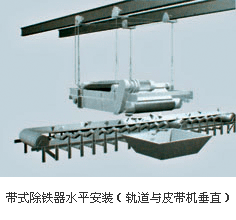 輸料大皮帶除了上下山段之外,多為水平運行,在大皮帶任意水平段上方均可按水平式吊裝除鐵器。